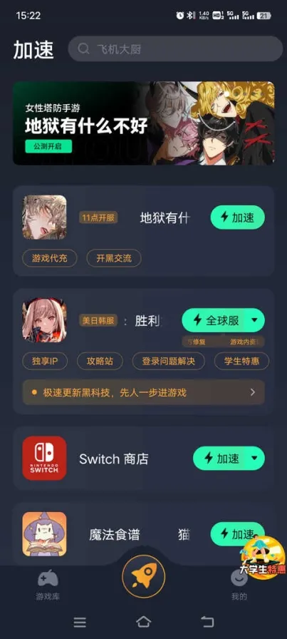 1、首先打开奇游手游加速器,找到地狱有什么不好官方版,然后点击右侧加速;