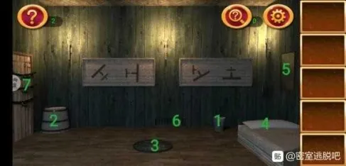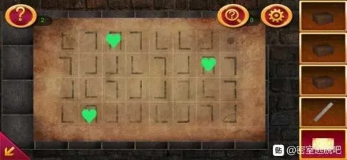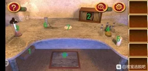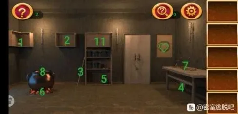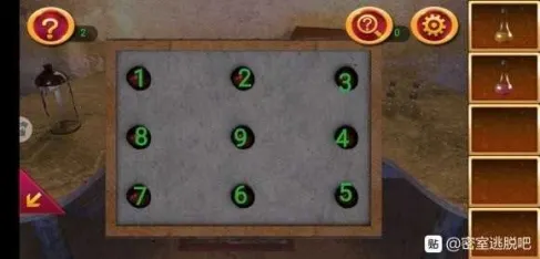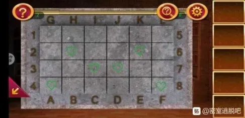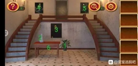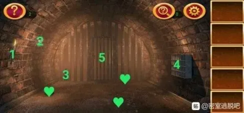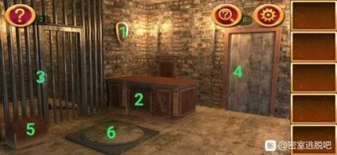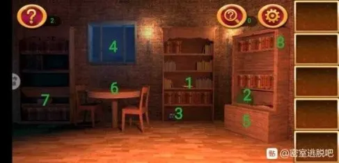 1处发现提示,在2处根据提示调整格子,拿到钥匙。