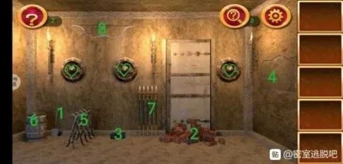7处如图顺序点击头部,将剑插入机关,发现密码Ⅳ=1。