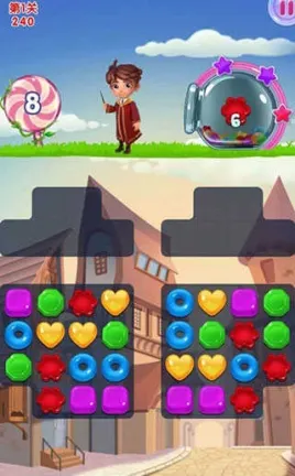 6、把4颗糖果连在一起会形成强力的魔法特效,启动它会消除直线上的所有糖果