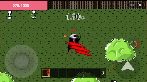 2、左下角按钮控制移动,右侧跳跃,左上角是自己的血量,你需要在这里不断移动,攻击敌人,争取存活时间,好的成就可以自动载入到排行榜,参与排名哦!