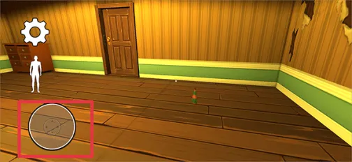 1、进入游戏后,你将出现在一间房间内,然后利用左边轮盘控制角色的移动