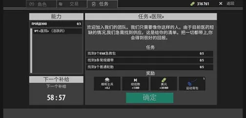 IFAK急救包:与任务一的一样,如果在任务二中用完,可以选择去维和队员商人处购买,然后卡10次,就可以完成任务。
