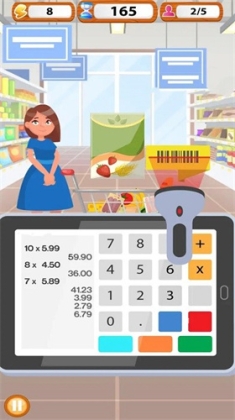 玩家扮演超市的收银员,帮客人买单,以此来招揽更多的客人。