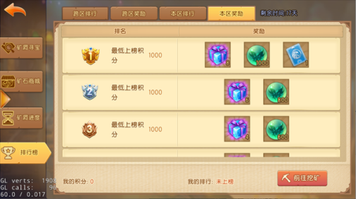 奖励规则:玩家挖矿后会获得奖池中的随机道具及固定的排行积分