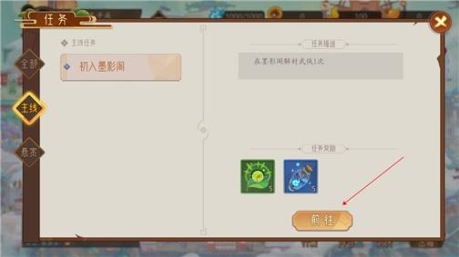3、选择主线任务,点击【前往】即可开始体验游戏。