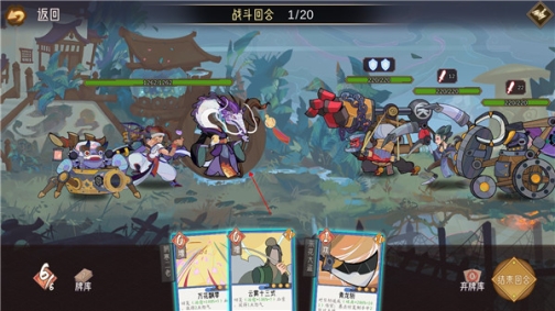 4、卡牌大致分为两种,一种是对己方使用的增益卡牌,一种是对敌方使用的攻击卡牌。每次使用都会消耗行动力,行动力不足时则无法使用卡牌。