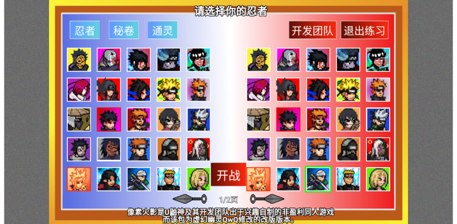 5、然后选择对应的角色、忍卷、通灵兽,就可以开战了。