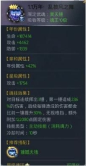 锤憾天地和乱披风之舞不一样,锤憾天地是被动技能,不需要消耗能量条,锤憾天地的效果是可以提升百分比攻击和无视百分比防御,在实战中配合乱披风之舞可以打出巨额伤害,而且锤憾天地可以通过各种方式获得,商场也可以购买到,获取难度上也较为简单,所以小编建议大家搭配这一魂环。