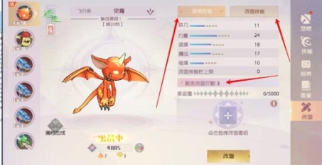 1、首先是宠物属性方面的改造,在这个页面中,大家可以对于自己的宠物属性进行不断地改造加成,让宠物变得更强,更有潜力,但是注意哦,宠物改造是有次数限制的,当次数完了,就不能再继续改造了。