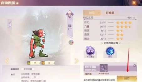 这样在宠物图鉴界面去激活它。再点击封印,就可以自动前往该宠物所在的地图了,玩家就可以伺机抓捕宠物