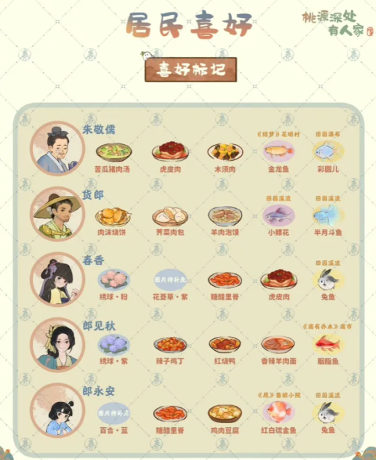 春香:绣球·粉、花登草·紫、糖醋里脊、虎皮肉、兔鱼