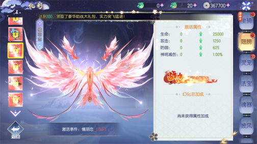 亲爱的上仙,小仙女这次给您介绍一下游戏里的翅膀系统,相信上仙已经拥有了属于自己的一双翅膀,不过有了翅膀可别忘了培养哦,因为翅膀形象可随升阶每一阶都有不同;可以选择心仪的酷炫外观,当属站街必备!