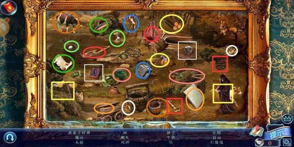 6、接下来用溶剂喷在场景4大厅的油画上(图20),然后玩找配对小游戏(图21),得到“汽车储物箱密码”。