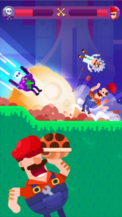 3、在每一关开始的时候我们都可以看到对阵的两个人,并且由于每个人的武器都是不一样的,在游戏中玩家们需要能够很好地去根据那些角色的不同来选择不同的攻击方法,以及正确的技巧。