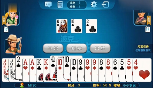 操作方便快捷,滑动选牌,即可出顺子,提示出牌,让你更胜一筹!