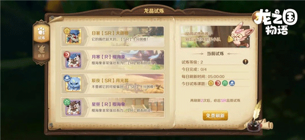 当然,如果你觉得自己的实力和技巧足以挑战SR难度的龙晶试炼,也可以刷新当前龙晶试炼——刷新一定次数,必出SR难度试炼!