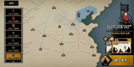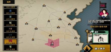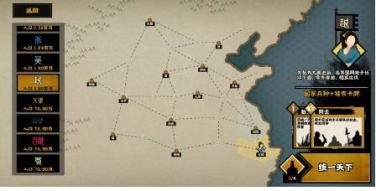 2 、燕国:这国家右上角,开局带一个小城池,点完民生里两个发展的,直接打边上那个村子。这时候兵应该不多,先苟着。期间点出偷窃,这模式bug级技能。直接偷,左上角九原,反复偷,苟着。期间隔三差五天天赵,兵够就打赵,先打他和北戎之间的。别去打北戎,开局她太猛了,手段很残忍。打完持续偷北戎,期间战斗力多点,民生多点。对了,前期把李牧的据守点出来,打架很好用。把赵国的土地全收了,差不多就可以稳一会。因为你兵不怎么多了,避免土地太多没兵。期间齐国那傻缺会隔三差五来打你,记得升级邯郸的城防(墨子可以加城池的血,好像是守家比较肉)。之后看时局,兵多钱少就到处打架,打完就剥削,别管有没有民心,民心降到0造反就重新打,又可以剥削一次。兵少钱多就苟着,多余的行动力可以拿来偷偷偷。后期基本就是捡漏,或者强推。