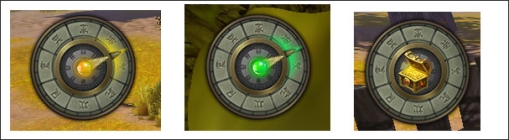 4、但如果你没有传送符道具、或者不想消耗传送符(毕竟10元宝一张),你需要根据系统提示传送到宝藏所在地,然后右击藏宝图,在游戏的左上角会出现一个罗盘图标,旋转游戏视角,契合罗盘指针指示方向可以去找宝藏。