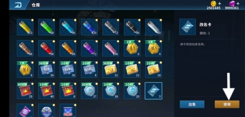 1、在个人资料界面点击修改名称按钮,消耗一张改名卡即可修改名字2、在仓库中点击改名卡的使用按钮进行改名