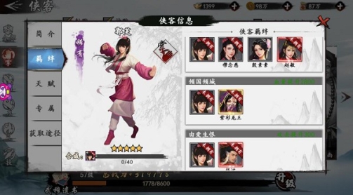 郭芙的羁绊以众多美女为主,大侠在配队时可以考虑把她们全都带上,具有很强的羁绊属性哦。