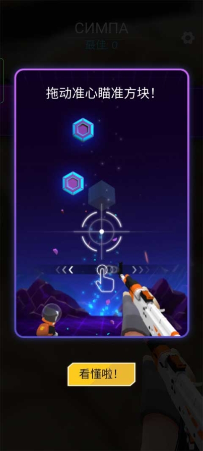 游戏的玩法十分简单,通过拖动准心对准方块进行射击,熟悉后即可参加正式比赛。
