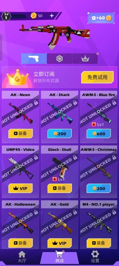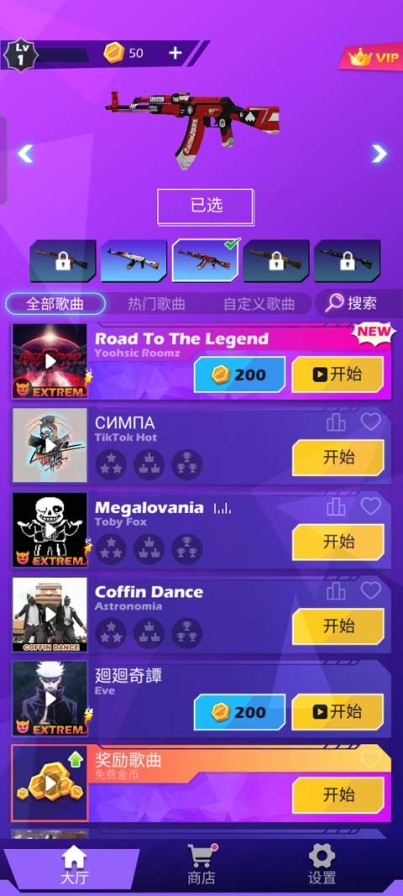 4、玩家可以在商店中购买自己喜欢的枪皮肤,将枪击和音乐相结合,就能用自己喜欢的枪支开始射击啦。