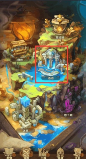 亲的小伙伴们,我多多小编又来了,这期还是为新手小伙伴简单的介绍游戏中的系统和玩儿法,今天为大家带来的是‘活动’玩法。首先我们点击主页冒险按钮进入另一个界面,再界面中我们可以看到‘活动’的图标,点击进入。