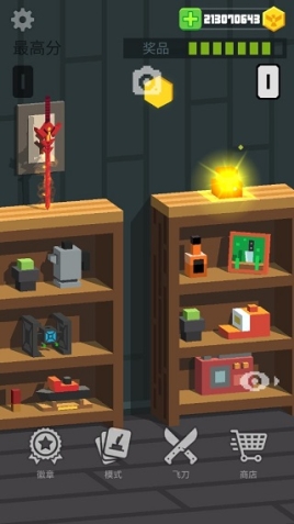 游戏中还有一个飞刀商场为我们提供各种各样的飞刀,我们可以用游戏中获得的金币去买自己喜欢的刀。不同的刀重量属性也各不相同,这就是看个人喜好和手感的了。当然有收集癖的人也可以花点时间把所有飞刀都买下来。更新日志