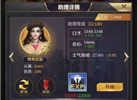 助理的品质一共有五种,从低到高依次为绿,蓝,紫,橙,红,可以通过升级来提高属性的。助理还细分为4个岗位,行政、财务、设计以及公关。
