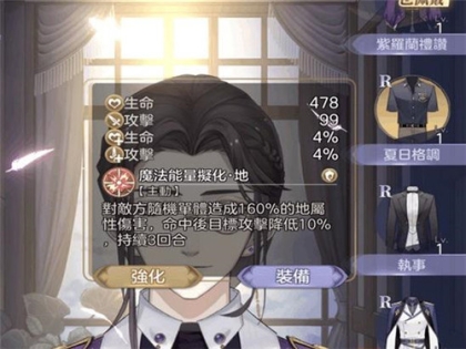 每个男主都与女主有羁绊值,羁绊值越高就可以获得额外属性,而要想提升羁绊值就得收集相应的男主的服装、送礼、多进行沟通。