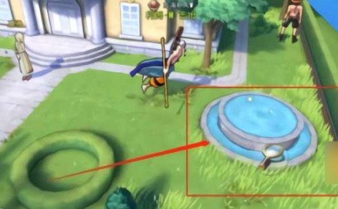四、之后就是最后一个线索提示了,也就是不少小伙伴们比较疑惑的撒谎布充满回忆的地方,我们前往别墅的喷泉水池那里,就可以得到最后一个数字4。