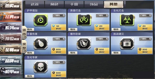 角色增强:【生化专家】【挑战硬汉】【护甲增强】【C4拆除】【c4安装】【防御闪光】【爆炸防御】