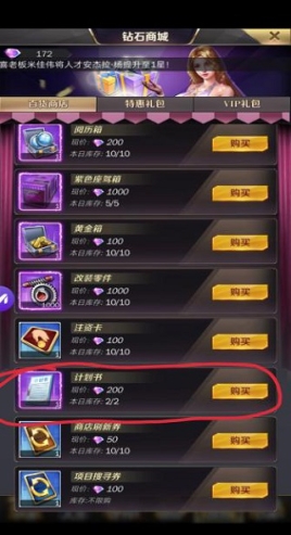 《商道高手》里要想冲榜商战在其中起着至关重要的地位。因为商战他既可以得到名望,还可以得到阅历。而名望是升级的两大重要元素之一,阅历更是人才研读的材料。如图一、图二。每天都有一定的商战次数。从0点开始,每相隔4个小时增加1次商战次数,次数用完了,他还可以用钻石购买。不同的VIP等级,它有不同的购买次数。购买商战次数的道具叫做计划书。计划书可以在钻石商城,全民夺宝,地产商店,商会里面得到。