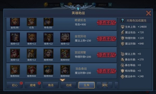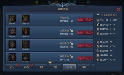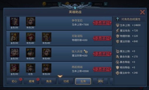 “乱象”为英雄助战第5个标签,因此相应的解锁条件也是比较苛刻的,当然解锁后获得的属性也是极为诱人的。以成就“绝望反击”为例解锁后可获得900攻击力加成,所以还是那句话达成的条件也许会有些许坎坷,但是只要各位勇士坚持下去所获得是回报会令各位满意的。游戏角色转换在哪