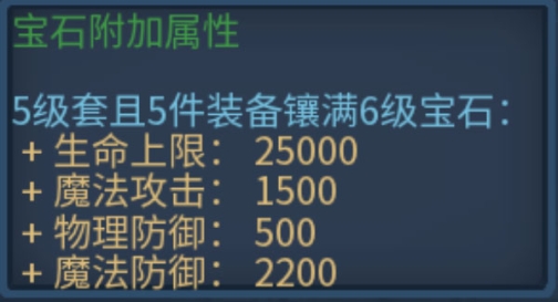 即日起,宝石套装全新玩法火爆开启!当玩家激活5级宝石套装所有属性后,只要镶嵌满6级宝石的装备数量达到3、5、7即可提前激活部分6级宝石套装属性;