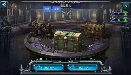 秘宝系统共有三个宝箱组成,金宝箱、银宝箱和圣堂宝箱三种,前两种宝箱需要对应的钥匙才能开启一次。每次开启都能直接获得一件游戏物品,金钥匙开启获得高价值物品的几率比银钥匙高,开启次数越多,获取高价值物品的几率也会更高。每次金银宝箱的开启都会产生少量圣堂积分,积分达到一定数量,即可免费开启一次圣堂宝箱。而每开启一次圣堂宝箱,就会获得十件游戏物品作为游戏的馈赠。