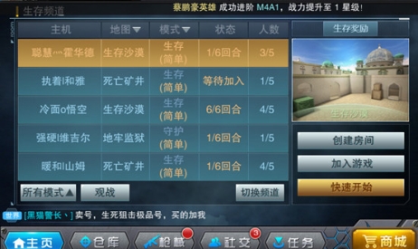 在对战大厅中,有很多不同的模式可以选择,竞技模式战斗节奏比较激烈,除了经典的团队竞技、歼灭战以外,其他模式对新手来说都颇有挑战。此时你可以选如躲猫猫的娱乐模式,缓解一下战斗节奏,也可以找个师傅带你一起参与战斗,提升技术。