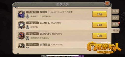 【部落任务】【部落BOSS】【部落强盗】【世界BOSS挑战】等一系列部落活动,都会奖励大量的族贡。其中部落任务和部落BOSS这种单人且全天开启的任务,性价比十分高,建议每天不要落下,跑一圈任务下来,升级部落技能的族贡就完全够了。