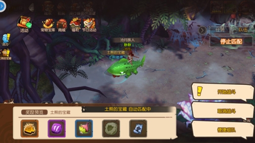 土熊的宝藏活动在玩家等级达到35级的时候开启,每日13/15/17/22时15分开启,每次开启会持续15分钟,既可以组队参加,也可单人参加,活动奖励为橙宠碎片和高级战宠技能和海螺券等,就这个活动等级而言,可以说是非常丰厚了。在活动时间内,点击参与按钮会直接传送到活动所在的场景当中,在场景中可以选择不同的土熊进行挑战,一共分为土熊喽啰、土熊精英和土熊首领三种。