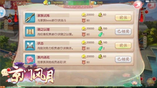 除了心法研究之外,家主还要负责每日发布家族任务,这些任务不仅能为家族带来利益,还能增加普通成员的收获。家族试炼的事务倒不需要家主多费心,相信成员们都很乐意去挑战一把,顺手收点奖励,表现好了还能分到稀少的物品,如高等级宝石、花束等。家族影响力正在你的努力下缓缓提升哦,成为京门第一望族自然是风光无限。