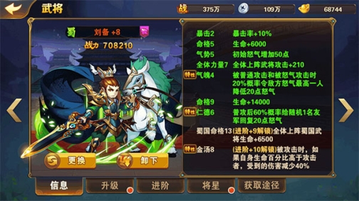 刘备总的来说,大招辅助并不给力,但是三个特性都还不错,保证了刘备的辅助能力。减怒和加怒可以说是最为实用的辅助能力,配合三马回怒效果显著,大大加快了怒气技能的释放。