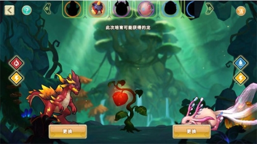 可以使用两条已有的龙进行培育,根据两只龙的属性搭配可获取新的龙种。低稀有度的的龙可以培养出高稀有度的龙,龙岛上最稀有的传奇龙也可以在培育中获取。未获取的龙会在界面上方显示为黑色剪影,方便玩家进行搭配解锁。