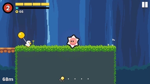 小鸡的追逐中文版是一款充满乐趣的横向卷轴冒险跑酷游戏,采用2D复古像素风格设计,并且游戏内容已经全部汉化,便于玩家更好地享受游戏。在游戏中,玩家将控制一个角色,在布满悬崖、炸弹、怪物等各类陷阱和障碍的危险丛林中奔跑闯关。玩家需要利用跳跃、双连跳以及发射火炮等方式来避开这些障碍。此外,在空中攻击时不会掉落,玩家可以利用这一点来规避部分障碍。不仅如此,画面中还散布着金币和星星供玩家收集,收集到十颗星星可以启动星之力,星之力能大幅提高速度并使角色进入无敌状态,从而免疫所有攻击。