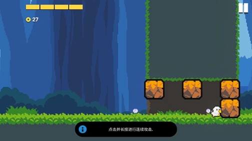 4、点击右边的屏幕可以发动攻击,点击并长按可以进行连续攻击,可用于摧毁障碍物,