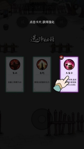 《大侠你的剑掉了》是一款连环画风格的肉鸽武侠闯关游戏。古云:侠之大者,为国为民。而我们的主角则是为了保护亲人,阴差阳错就在对的路上做了对的事情,成为了大侠。关于该游戏的玩法,与平时大家见过的武侠RPG有所不同,古色古香的游戏画面,外加丰富的剧情情节设定,总体体验下来非常的不错,而且游戏还设计了超多场景,可以进行探索冒险。对于第一次进入游戏的玩家,先来了解一下游戏玩法吧!刚开始,玩家可以点击卡片,选择合适的秘籍进行强化。
