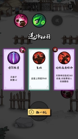 每当玩家完成关卡,他们有机会重新选择技能或被动能力,这里每次会提供三种选项。