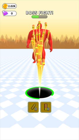 3、游戏采用的是闯关玩法,每一局都有时间限制,你需要把握时间,在有限的时间里收集更多的武器4、游戏场景中还会出现一些惊喜礼包,比如更加酷炫的黑洞皮肤