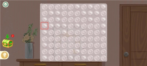5、把花插好之后,玩家会发现并没有过关,那是因为还需要上图遮盖照片的那层塑料袋,点击上面没破的泡泡;