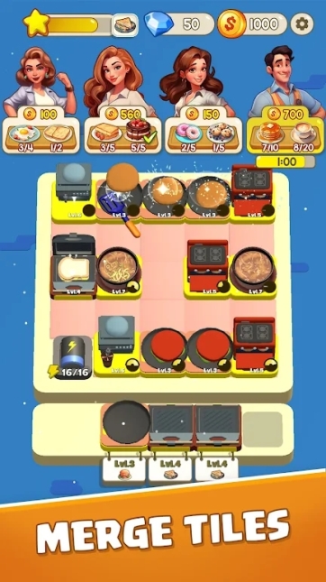 3.通过合并食材制作菜品,玩家可以根据顾客的需求来创造出丰富多样的菜单,提升顾客满意度。